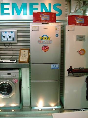从月星出来,我就到斜对面的永乐去看冰箱。昨天晚上和peggy就去中山公园的国美去看过,我们最看中的siemens KK28E76最低4600¥能买到,最后涨价的时间是星期一,所以今天一定要确定了(如果确定买siemens的)。我们到用乐和siemens的推销员直接说清楚,只要他们的价格能在4500¥做到,我就当场买了。2个推销员商量了半天,从其他的地方搞来几张打折券,最后我们付了现金4600¥,开票4700¥,但是送100¥的小家电(我们买了一个电饭煲),送价值200¥左右的siemens电咖啡炉,还送了一桶食用油(about 30¥)。就这样我犹豫了几天的高价高个电冰箱就这样买下来了。我想等到年后新房保洁后就提货,他们会送上门的。