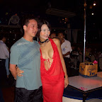 傍晚时分,我们乘渡船上了东方公主号,这是著名的人妖表演游船,附近也有几首类似的游船。船上已经有很多人了,人妖也开始了表演。这是我第一次亲眼看到闻名遐尔的泰国“人妖”(这里叫做“海上西施”),真是令人惊奇,这里的人妖长的比女人还女人,身材绝对一流,他们的美丽也绝对让这里大多数的女性游客汗颜(只是他们说话的声音还是很粗的)。真是老天不公平,让他们投胎做了男人再忍受无尽的痛苦变做人妖。我们一边吃晚餐,一边欣赏人妖的表演。别说她们的舞蹈还是挺专业的,舞姿婀娜,听导游SONG说她们都是经过专门trainning并通过严格考核选拔的。我们大家都找到漂亮的人妖(其中一个短发的美丽人妖最受大家的喜欢,我也是和她合影的)与之合影留恋,更有大胆的去抚摸其双峰(要小费的噢),^_^。人妖们很会带动气氛,我们还一起跳舞,开心的不得了。期间还举行了喝啤酒的比赛,我们jack也参加了,只是可惜没有拿到冠军。