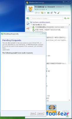 这些日子,我的WLM上总是显示“Pending Request”,大概是什么人或者系统像我发送的某种请求,但是我点击打开的对话框没有任何具体的内容,点击“done”或者“cancel”都没有任何响应,只能“×”掉,让人难以理解。