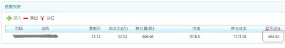 当然股票涨是件好事,尽管目前收益是少少的几百大洋,因为我们只是少少投资玩玩而已。我也不打算卖了,准备就这样放上一年再说,反正也不靠它发财(还不如买彩票,中个500W什么的,做梦ing...)。
