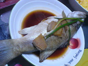 清蒸鲈鱼 -- peggy蒸的鱼相当不错的,我们俩经常抢着吃,特别香。