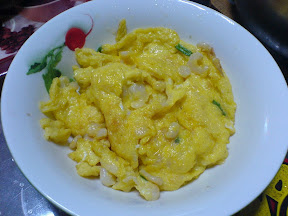 虾仁跑蛋 -- 就看这份色泽,就知道好吃了。