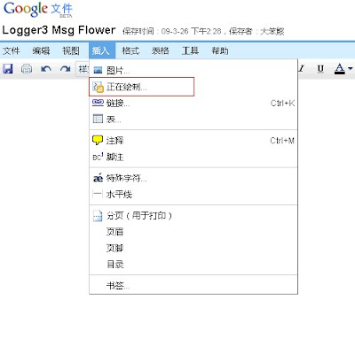 目前Google Docs里的绘图功能还很阳春,还有图例过少,不能联接,图层上下调度,组合/分离等缺点。