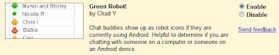 现在 Gmail Labs 出现一个新的功能,可以让你的 Gmail Chat 好友列表中使用 Android Phone 的好友显示为机器人图标,以示区别。