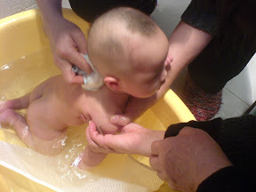 晚饭后,我们给宸宸好好洗了一个澡,看宸宸表情,就知道是很舒服的。