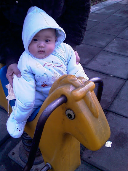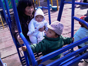 午餐前,阳光好,Peggy 和外婆带宸宸到公园去游玩。公园就在附近丽晶苑那里,过去挺方便的。宸宸还和其他小朋友一起玩的。Peggy 带宸宸出门还挺开心的,因为旁边的阿姨、婆婆们都说我们宸宸好看,Peggy 自然颜面有光。