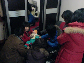这次出门 Peggy 特意指示带上宸宸的童车,说是到酒店可以把宸宸放在里面,不能很辛苦的一直抱着。实际上,不出我所料,这个人抱抱,那个人抱抱,几乎没有空闲的时候,童车一直放在角落里没有用上。带上完全是一个累赘。