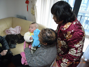 今天亲友们都到我们小窝做客,Jun 阿姨一早就带老爹过来了,老爹在我们阳台上和宸宸一起晒太阳。妈妈趁机和 Jun 阿姨、Xin 阿姨到中山公园去逛了一圈商场才回来,算是放风了,^_^!
