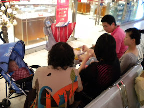 今天,peggy 约了他们夫妻及小宝宝--“好好”一起逛中环百联。这是我们宸宸第一次见小妹妹,除了半年前,大家都还在妈妈肚子里的时候,^_^。