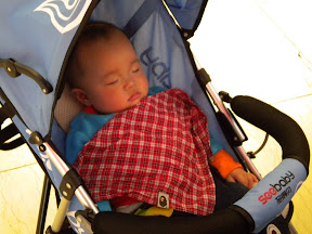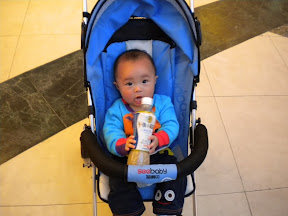 五个大人,推着两人小人的座车,逛了逛婴儿用品店,买了些用品。我们原本想给宸宸买顶遮阳帽的,但几家店逛下来,居然都没有合适的,倒是女宝宝的遮阳帽很多的。之后就找了个安静的地坐下来聊天,不一会两个小朋友就乏了,相约进入梦乡。两个新手妈妈聊不完的宝宝话题,一直聊到宝宝醒来,这时都近六点了。