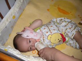 我就是想不通,这个小床已经很高了,为什么还会掉下来啊,是不是他自己乱爬呀,现在还不会走路,以后走路了,更要皮了。我建议他房间都应该铺上软软的布。