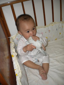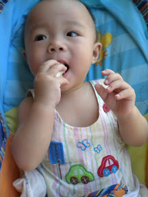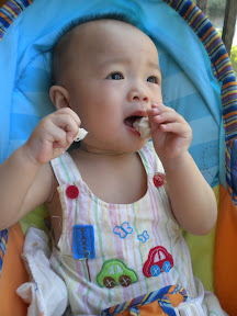 从昨天开始就发现宸宸胃口奇好,吃完什么东西,发现没有了,他还哭着喊着再要。看来毛病是快生好了。宸宸最近特别喜欢吃外婆买的小馒头,自己啃得带劲极了。