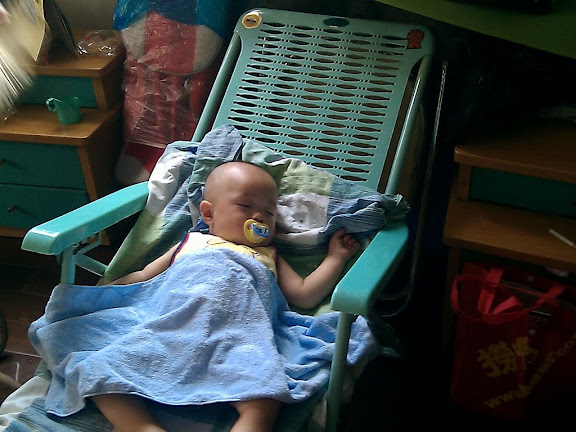 宸宸白天和外公、外婆到小外婆家里了,回来的时候,左脸脸蛋上被蚊虫叮了一个大包。