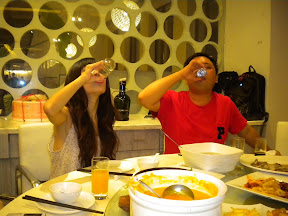 。老酒是少不了的了,我也被灌了一杯黄酒和一杯啤酒。难得 feifei 跳出来要喝酒。