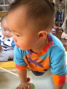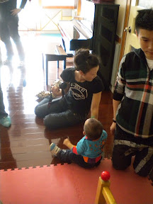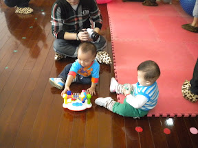 课后我废了老大的劲,才把宸宸拍清爽。课间休息,我们和嘟嘟哥哥一起吃东西。补充好营养后,我们继续室内活动。