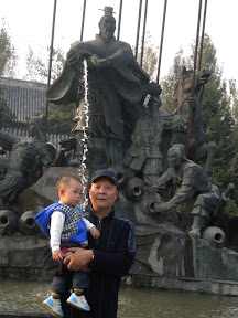 我们五点就起床出发了,一行九人在人民广场发车点碰头。多长时间没有这么早起来过了,早晨的空气真好,带了些寒气。宸宸很是兴奋,发车前,还在广场上闲逛,专找各个导游阿姨身上蹭,因为想玩导游的旗子。