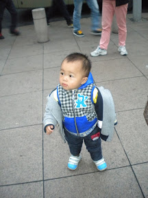我们真的是运气好,大巴士还没有出上海,就因为大雾高速封路,大家都下车活动,当然少不了我们宸宸。其他旅游大巴的一帮年轻人还拉着宸宸拍了不少照片。