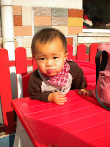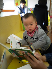 室内活动是读书。由于 Peggy 平时在家经常带宸宸看图书,所以宸宸很多都认识的,还获得老师的表扬了。