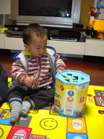 另外,Peggy 给宸宸买了积木下午也送到了。宸宸垒高还是有些样子,尽管有时不能垒的很整齐。不过一旦垒不好,宸宸就没有什么耐心了,转到玩其他玩具。