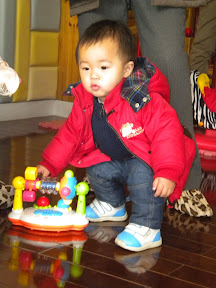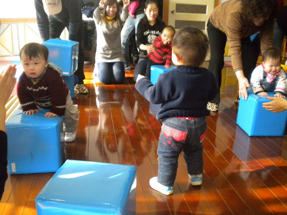 今天老师还搞了一个推盒子比赛,我们宸宸作为大哥哥,当仁不让的第一个到终点。瞧 Peggy 的开心劲。