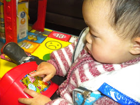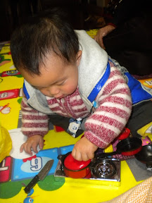 Peggy 给宸宸买了锅碗瓢盆、灶,水果、蔬菜还有扫帚、拖把什么的,宸宸没事可以过家家玩了。