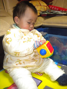 进小窝前,我特地从楼下的私家车车顶抓了一把雪,捏了一个小雪球,带上去给宸宸玩。毕竟这是宸宸第一次看到雪,宸宸谨慎的碰了一下,但很快就喜欢上这个小雪球了。宸宸一点都不怕冷,抓了雪球不放,冷得不行才赶紧扔给我。宸宸一直玩到雪球快完全化成水,宸宸小手都冷的微红。