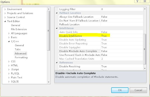VS2010 的 vcpkgsrv.exe(Microsoft Visual C++ Package Server) 很烦,会自动运更新,占用相当大的内存(在我的机器中 >150M),而且一般会出现多个,杀掉还会自动出现。其实我们可以很容易禁用它,只要 Disable IntelliSense 即可,位于: